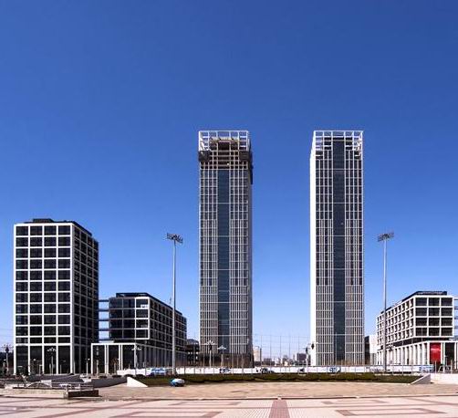大連國(guó)際金融中心諾德大廈位于大連市沙河口區(qū)會(huì)展路和體壇路之間,東側(cè)是大連期貨廣場(chǎng)A座工程,南側(cè)是百年匯開(kāi)發(fā)的大連國(guó)際金融中心配套工程,其中軸線是大連星海廣場(chǎng)的中軸線。A、B座對(duì)稱布局,面向原來(lái)的會(huì)展中心。雙子座大廈及其東西配套建筑圍合而成一個(gè)長(zhǎng)方形廣場(chǎng),其構(gòu)成向北開(kāi)敞的會(huì)展中心收尾,并在大廈前方營(yíng)造了延伸到會(huì)展路以外的巨大廣場(chǎng)空間。
