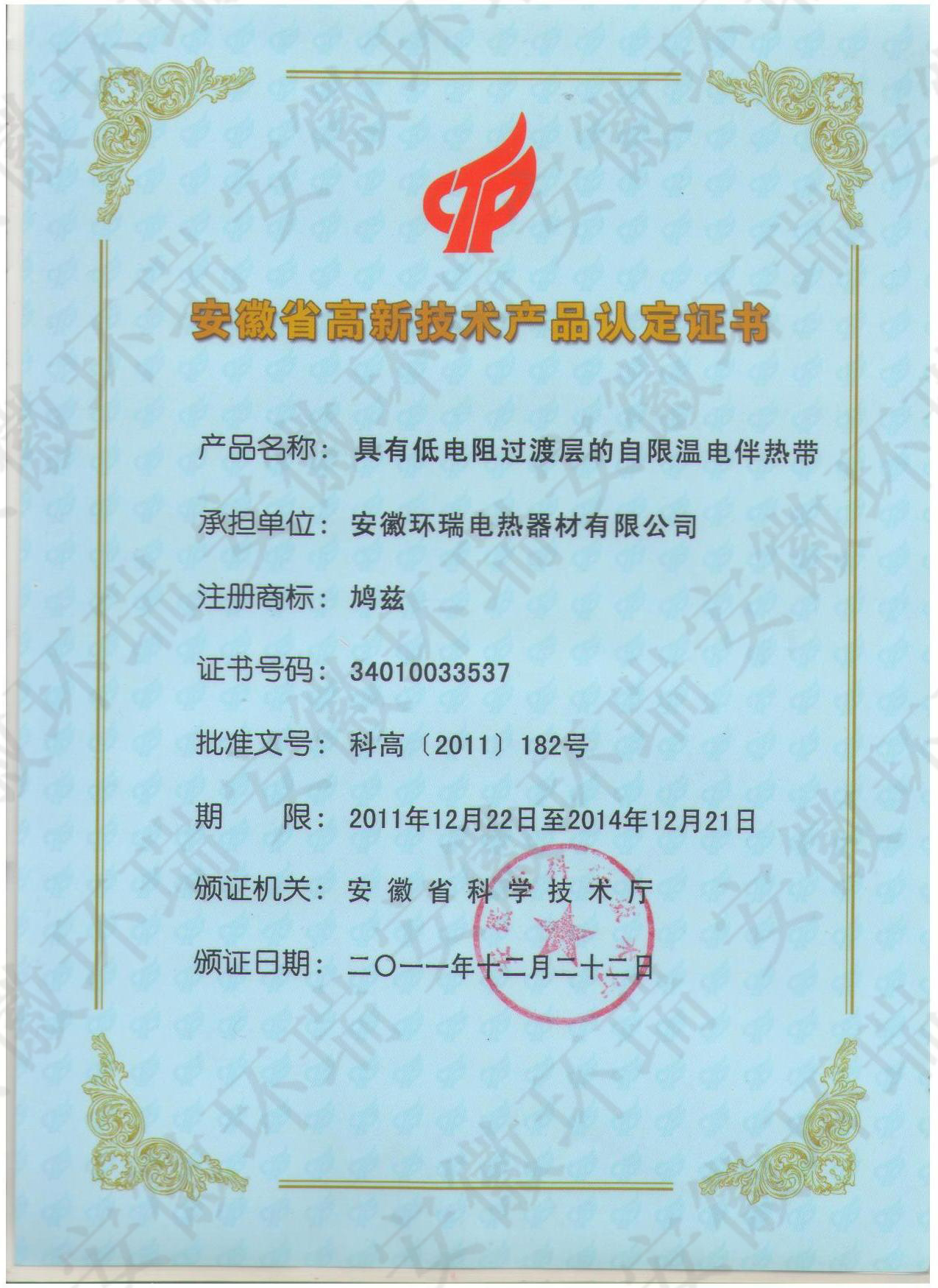 安徽環(huán)瑞電熱器材有限公司是國內(nèi)專業(yè)從事電伴熱生產(chǎn)、研發(fā)及應(yīng)用的高科技企業(yè)。公司生產(chǎn)基地坐落于安徽省合肥市肥東經(jīng)濟(jì)開發(fā)區(qū),公司始建于2004年,擁有國內(nèi)外先進(jìn)的生產(chǎn)及檢驗(yàn)設(shè)備,企業(yè)規(guī)模居國內(nèi)前列,生產(chǎn)基地嚴(yán)格按照ISO9001:2000質(zhì)量體系運(yùn)行,所有產(chǎn)品均采用國家標(biāo)準(zhǔn)設(shè)計(jì)、制造,并全部通過國家防爆鑒定中心防爆認(rèn)證,獲得多項(xiàng)國家專利,業(yè)務(wù)范圍涉及:石油、電力、鋼鐵、化工、煤氣、冷凍、食品、建筑、消防、太陽能、電熱采暖、烘房、地?zé)嵩耘唷④噹⒑I鲜推脚_(tái)、西氣東輸?shù)阮I(lǐng)域多行業(yè)。