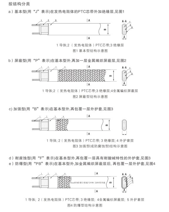 自控溫電伴熱帶結(jié)構(gòu)型號(hào)分類